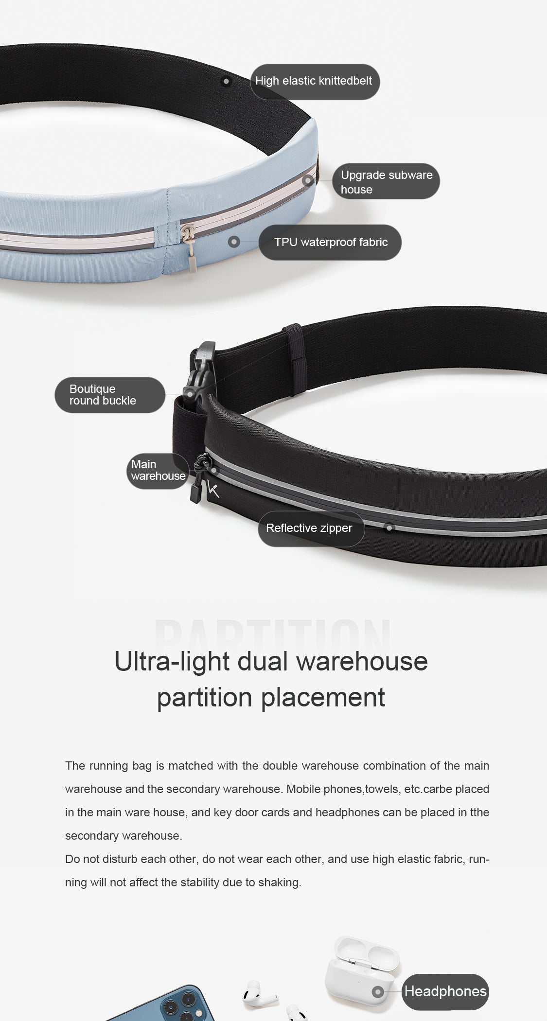 Dual-Compartment Waterproof Running Waist Pack